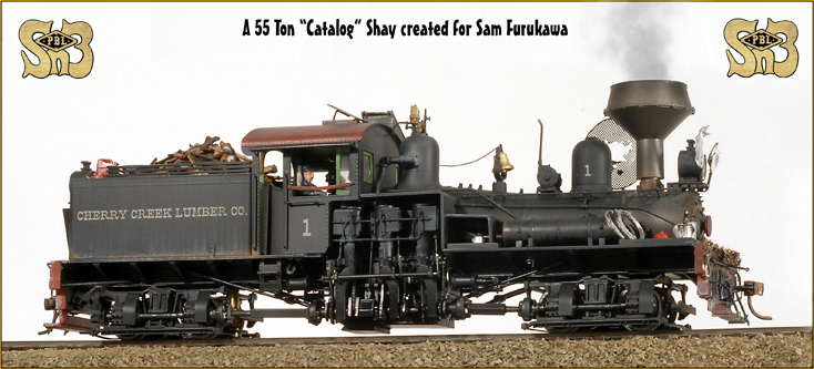 The 55 ton Shays, or "55 tonners" arrived in March of 2007.. With but only 80 models produced, total, and each hand crafted in Lifetime Brass, the term "Limited Production" took on real meaning! The prototypes for these two truckers were of pretty fair size, considered by LIMA as being 55 tonners.. #5 had the earliest construction date, 1902, and she was still on the roster in 1950.. Not too bad for a cantankerous old teakettle that had a propensity towards "heading for the woods" at times. . . Click on any of the photos above to access a site featuring that locomotive / version. You'll note that had "intended" to chronicle each of the "Special Order" Shays which came in with this project, but time being what it is? ? ? Let's just say that, in spite of the fact that we did, indeed get a number of photos of each of these unique shays, "we" didn't get to chronicle them all.. Dare I say "Because there's never enough time in a day? Sigh..." If you are a Shay Lover, a Geared Locomotive aficionado, or just appreciate fine art, you need to have a look at the models on these pages. They were just plain beautiful!