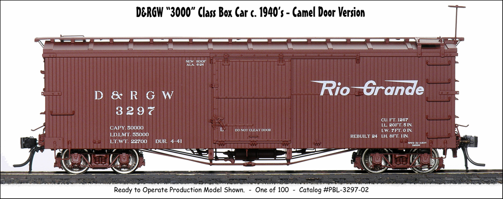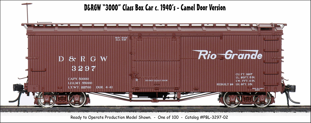 , car number #03057, an Economy Door car, and #03131, a Camel Door car...